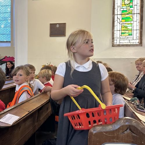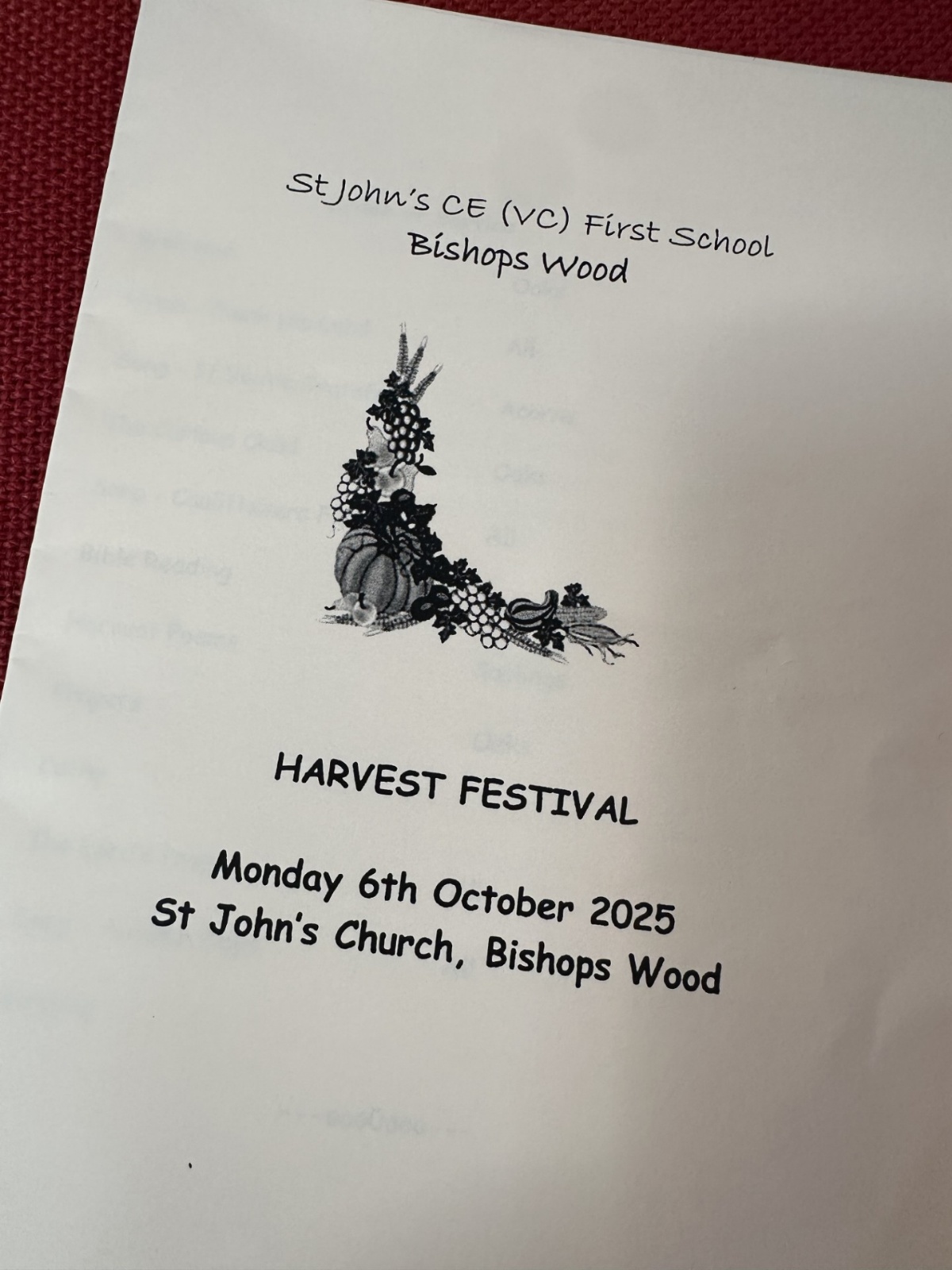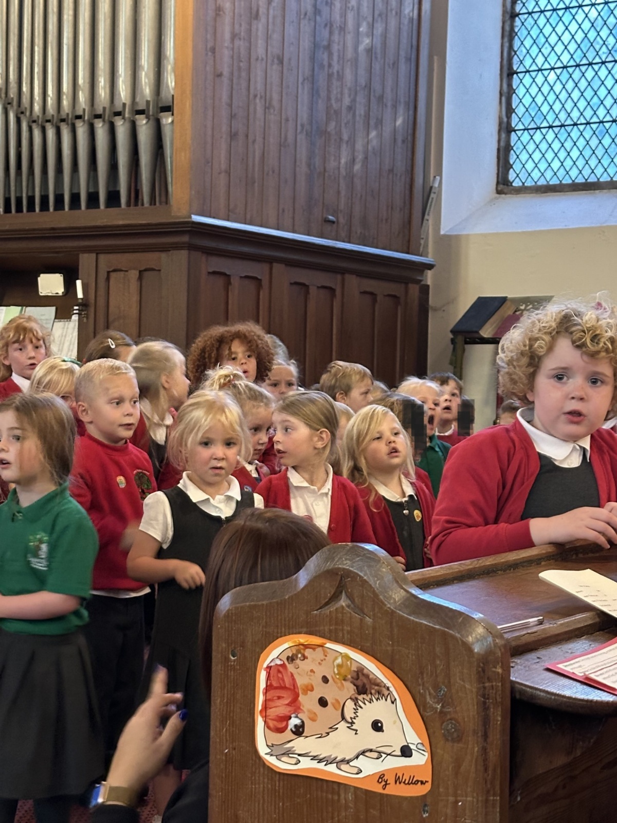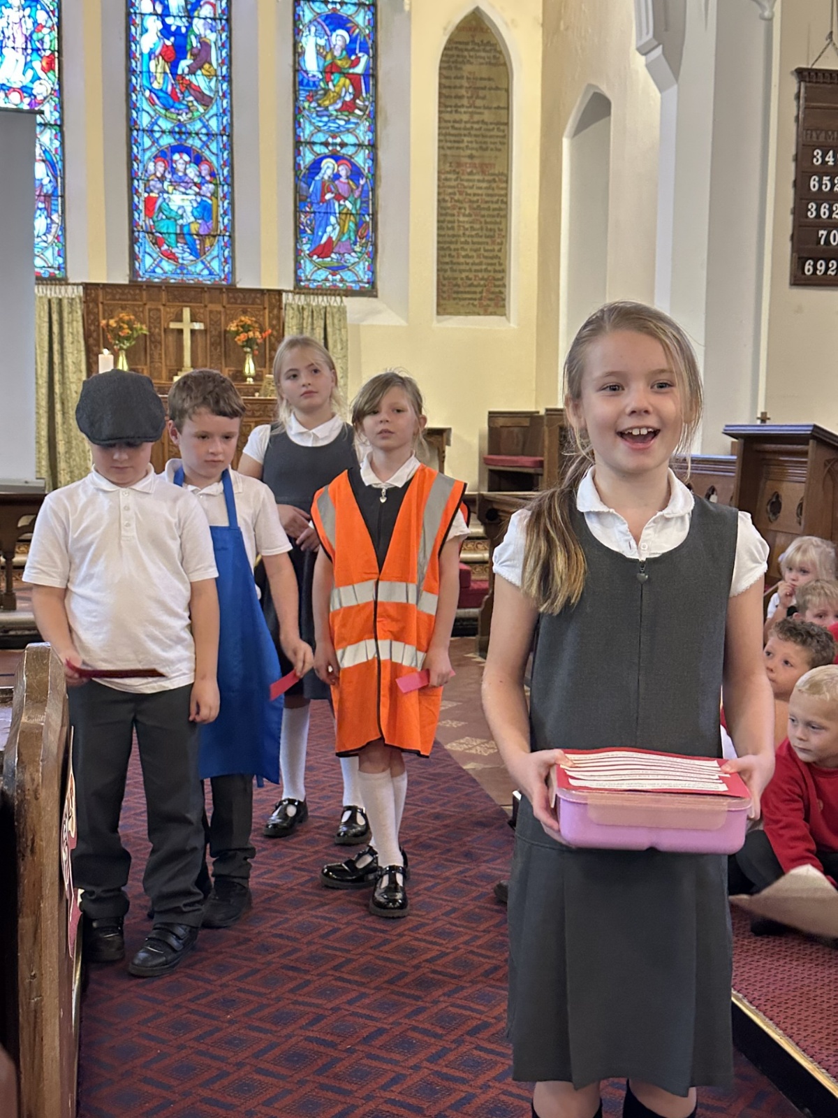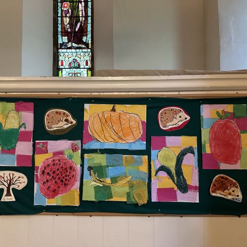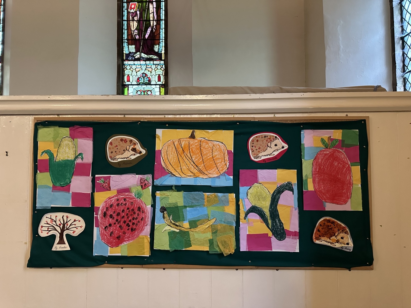 On a very sunny Monday afternoon, St John's First School walked down to church to celebrate the harvest festival. There the children sang hymns, said Thank you to God for all the food, read a bible story and decorated the church with their beautiful artwork. Cathy and Rev Simon helped the children during the service. It was lovely to see so many families join in with our celebrations.