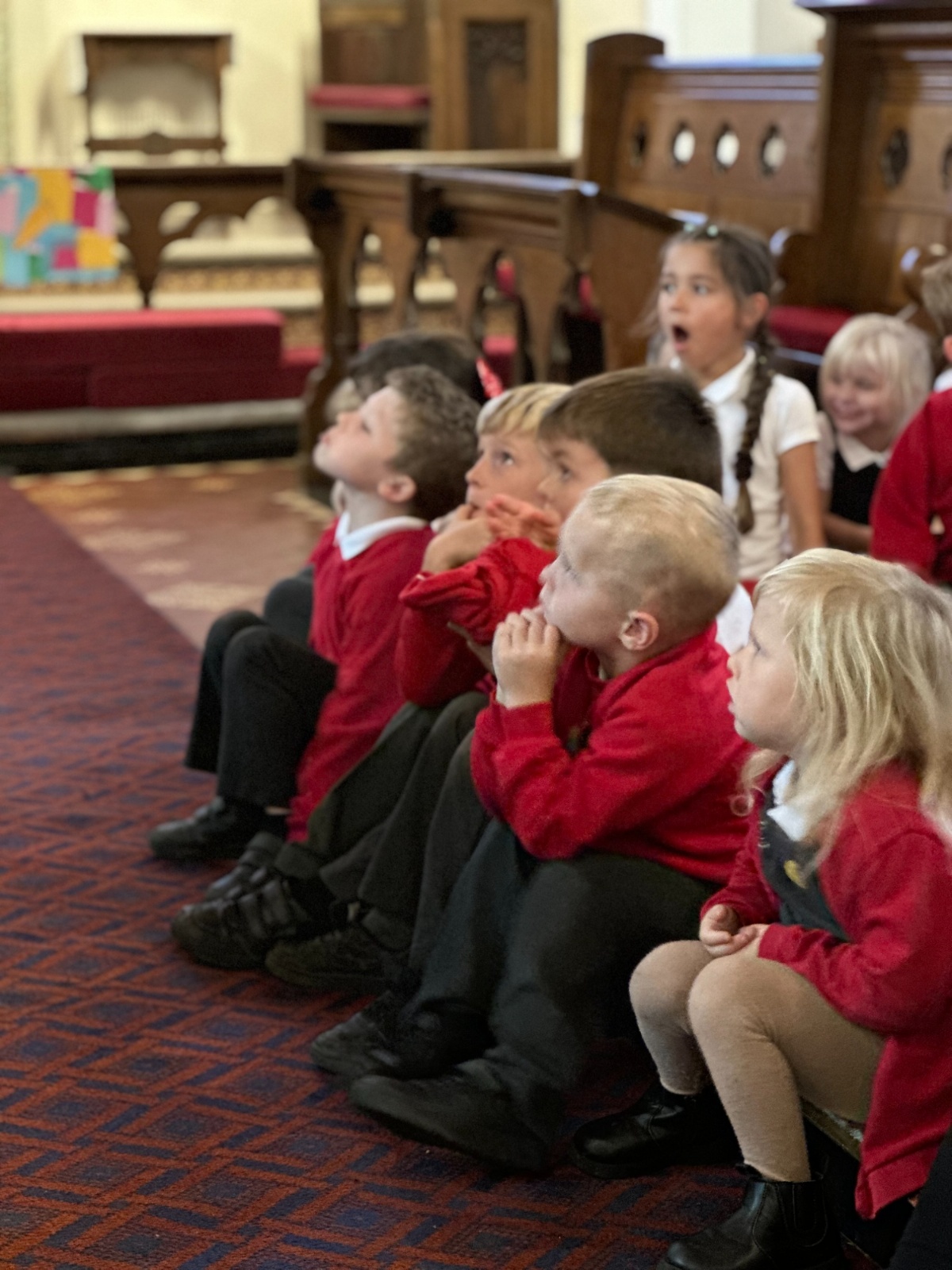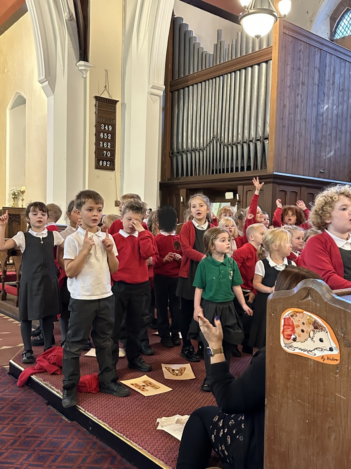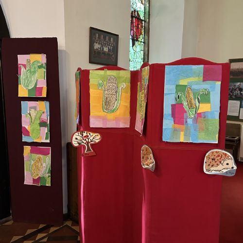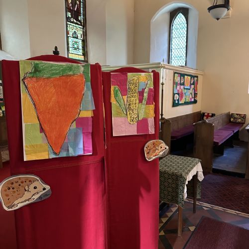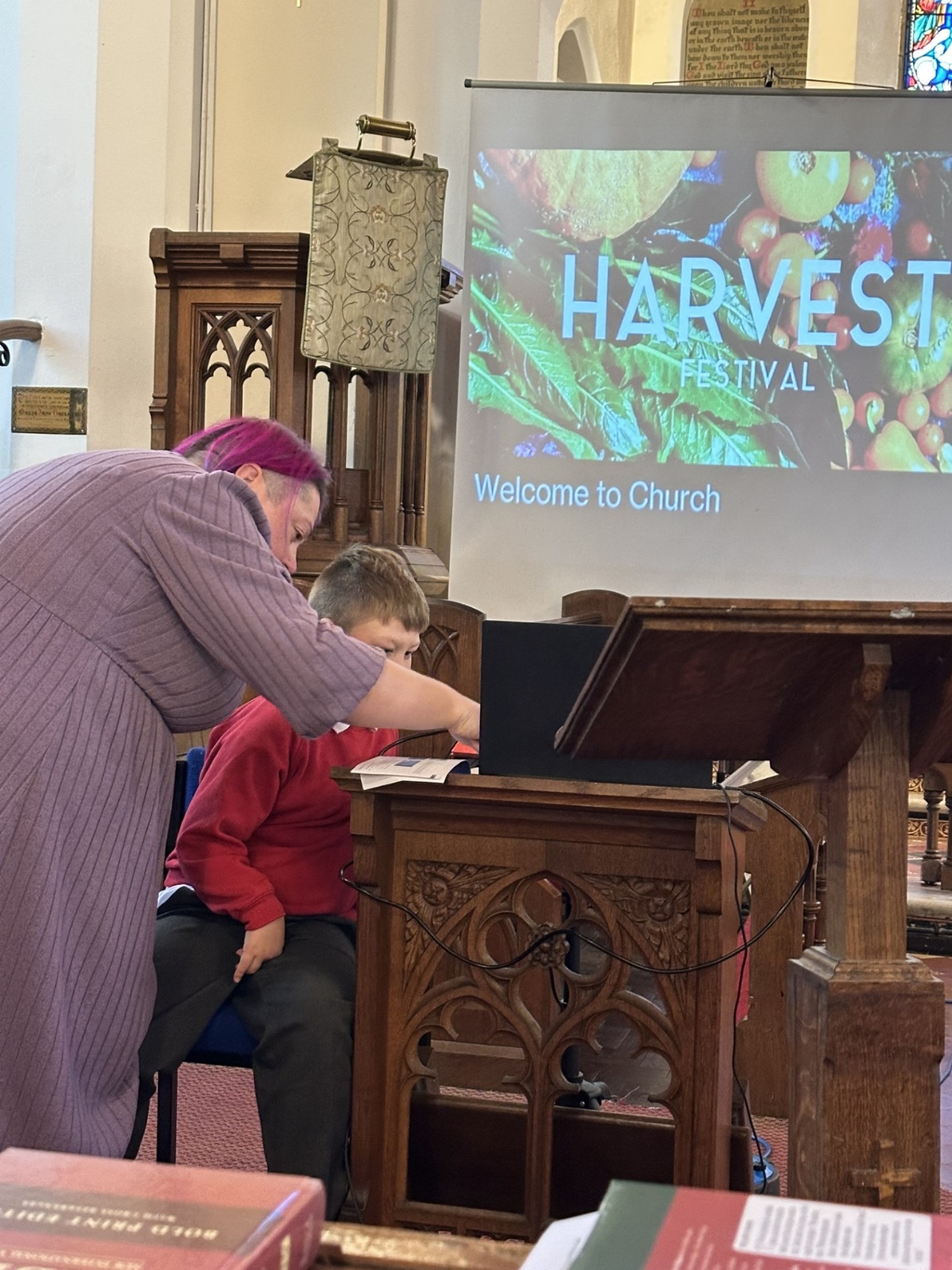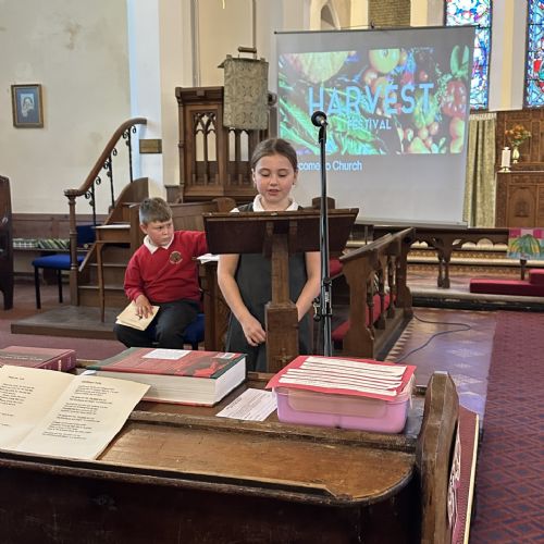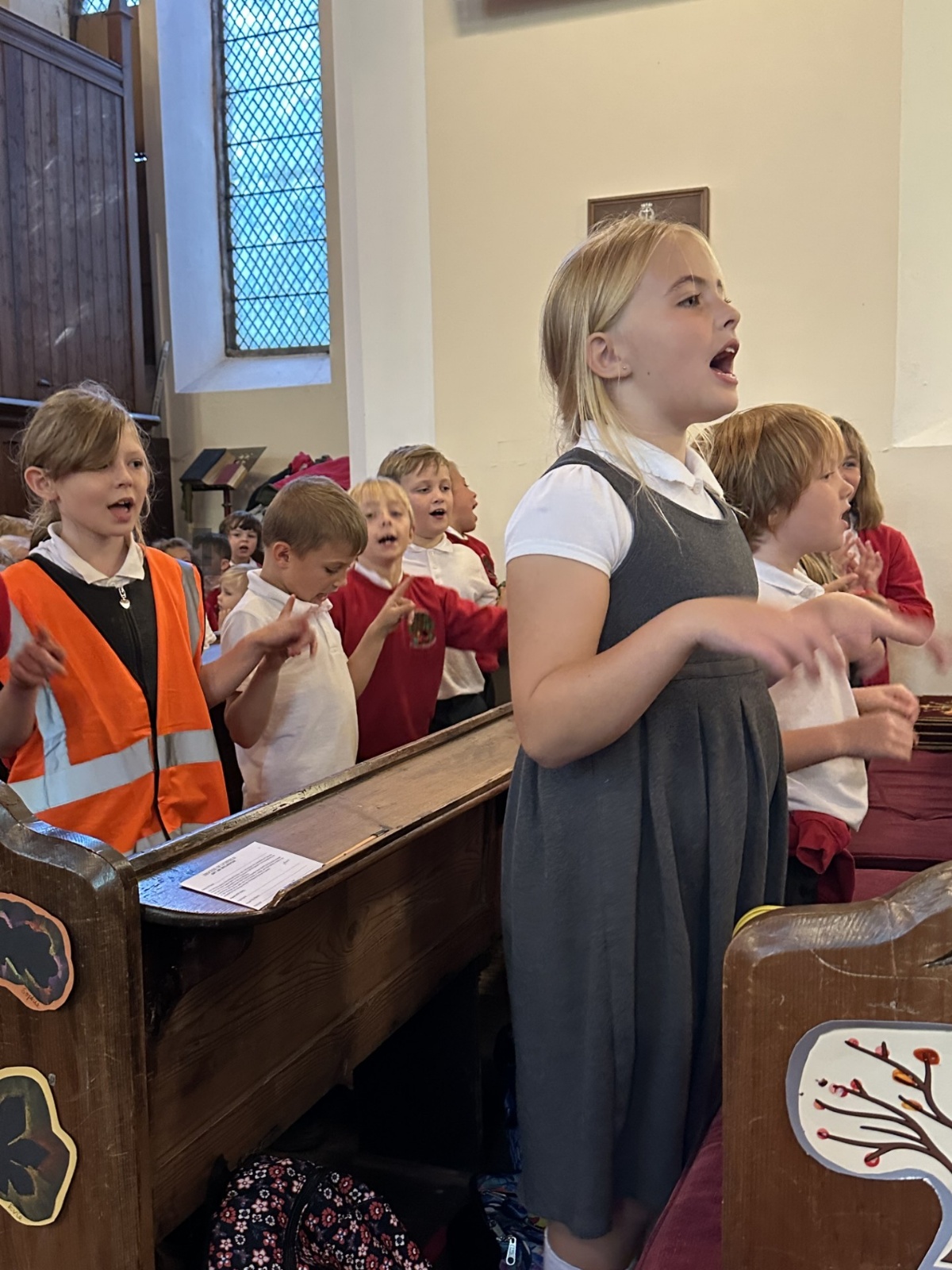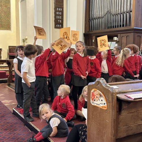 On a very sunny Monday afternoon, St John's First School walked down to church to celebrate the harvest festival. There the children sang hymns, said Thank you to God for all the food, read a bible story and decorated the church with their beautiful artwork. Cathy and Rev Simon helped the children during the service. It was lovely to see so many families join in with our celebrations.