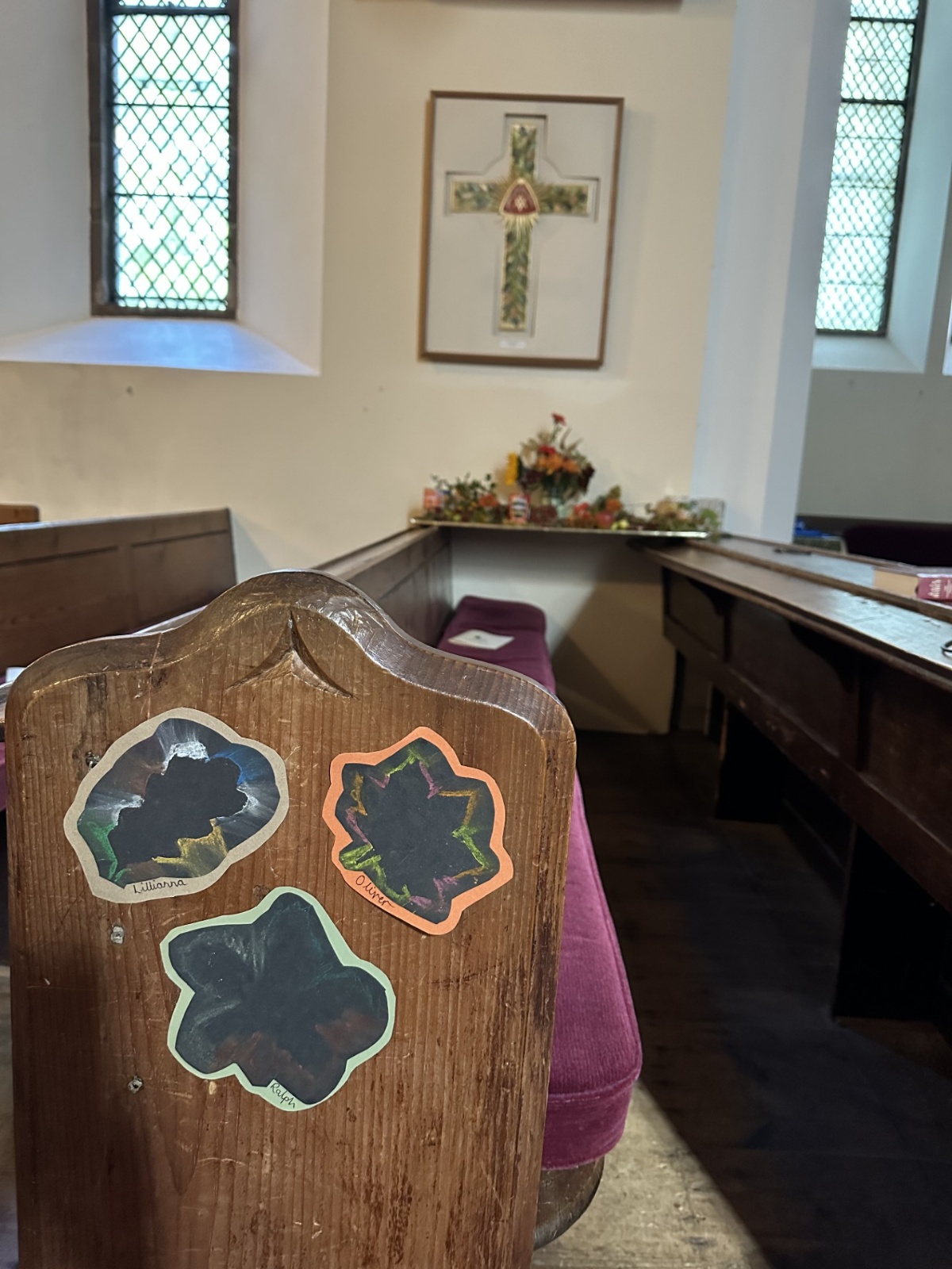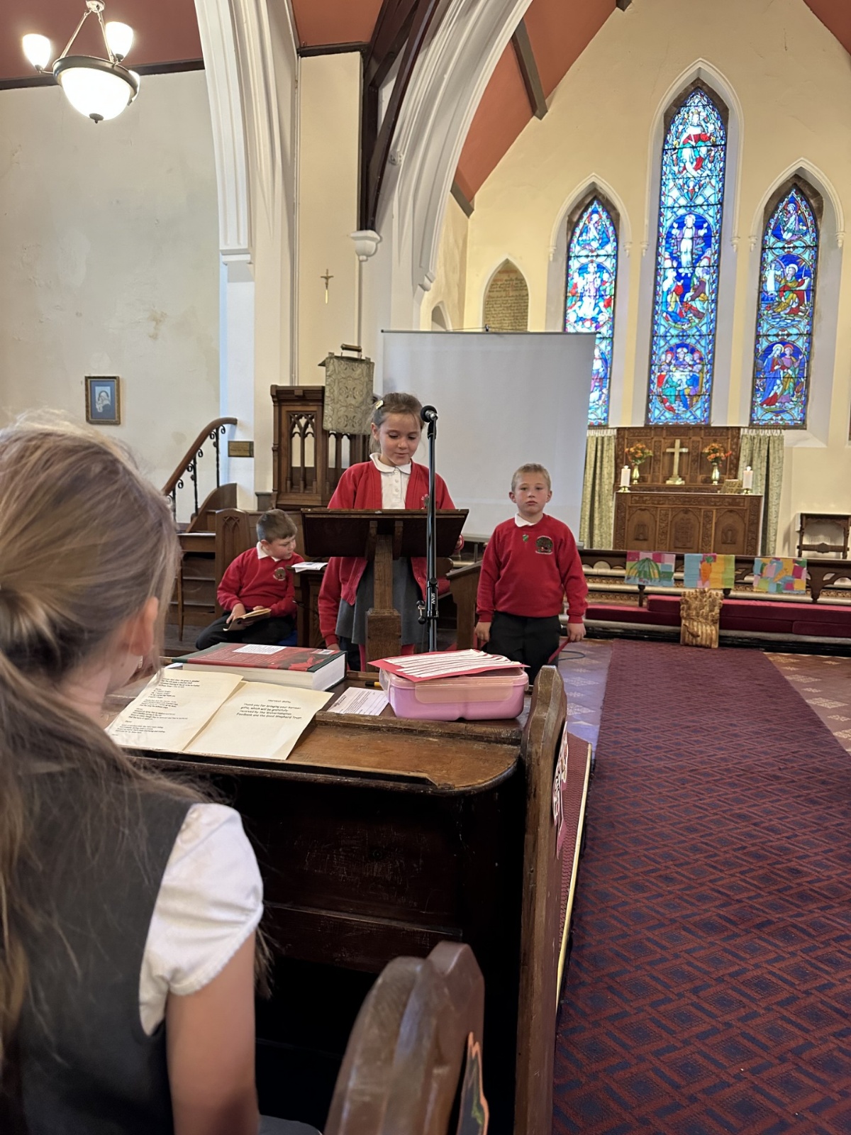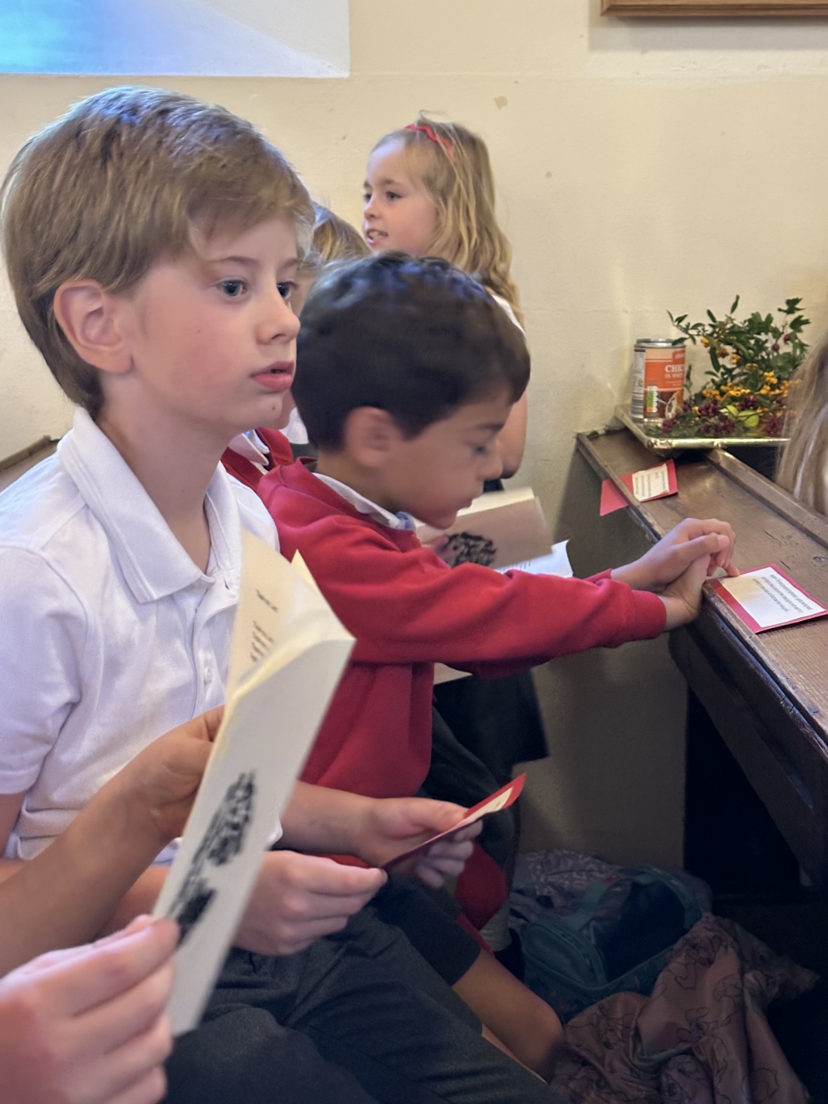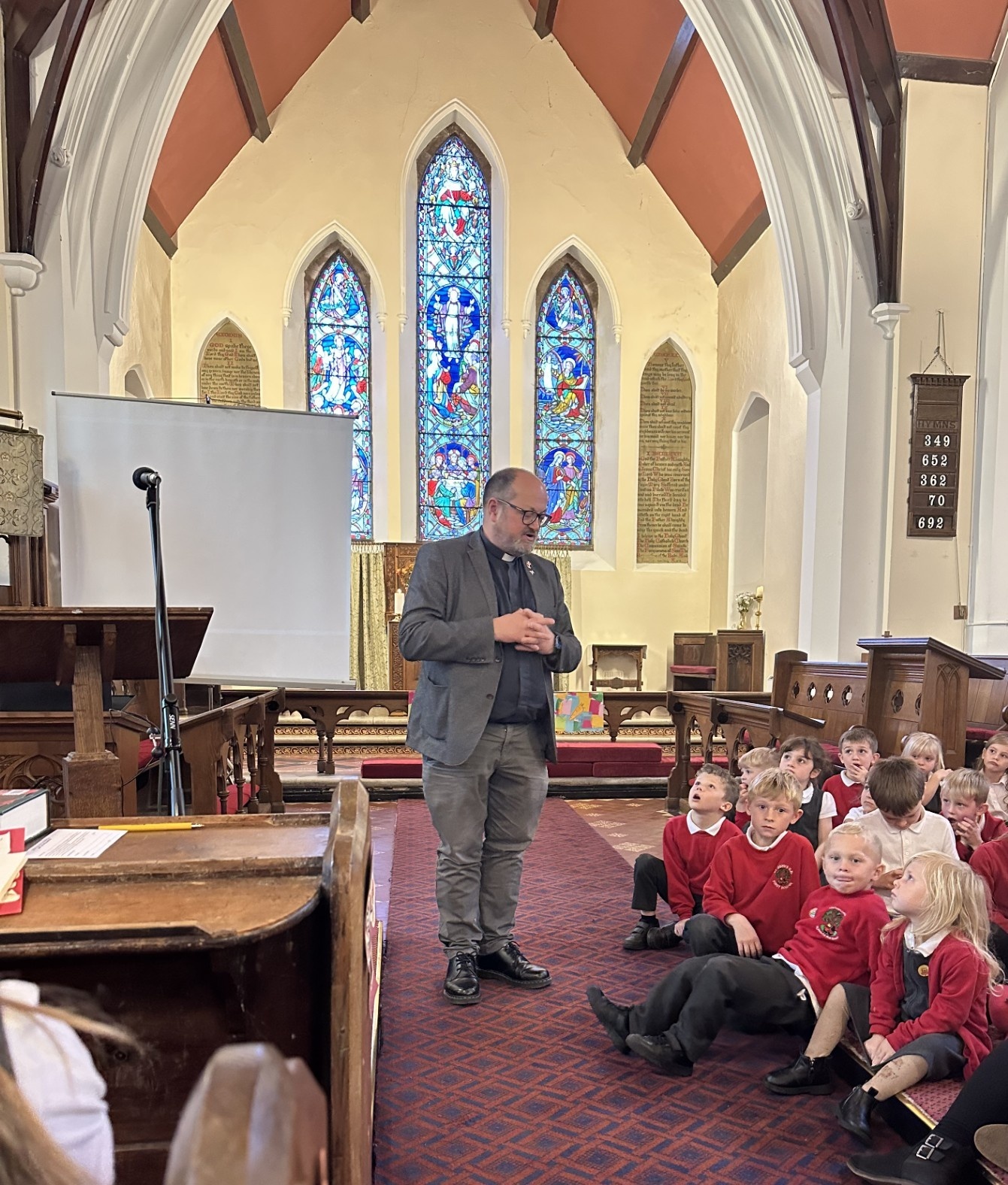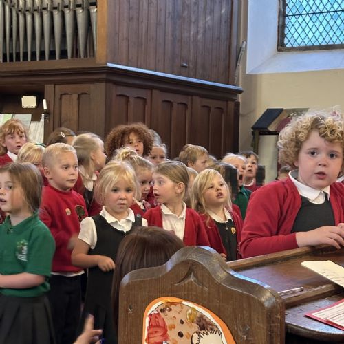 On a very sunny Monday afternoon, St John's First School walked down to church to celebrate the harvest festival. There the children sang hymns, said Thank you to God for all the food, read a bible story and decorated the church with their beautiful artwork. Cathy and Rev Simon helped the children during the service. It was lovely to see so many families join in with our celebrations.