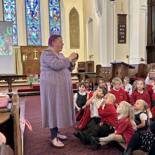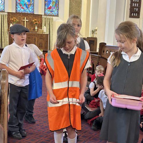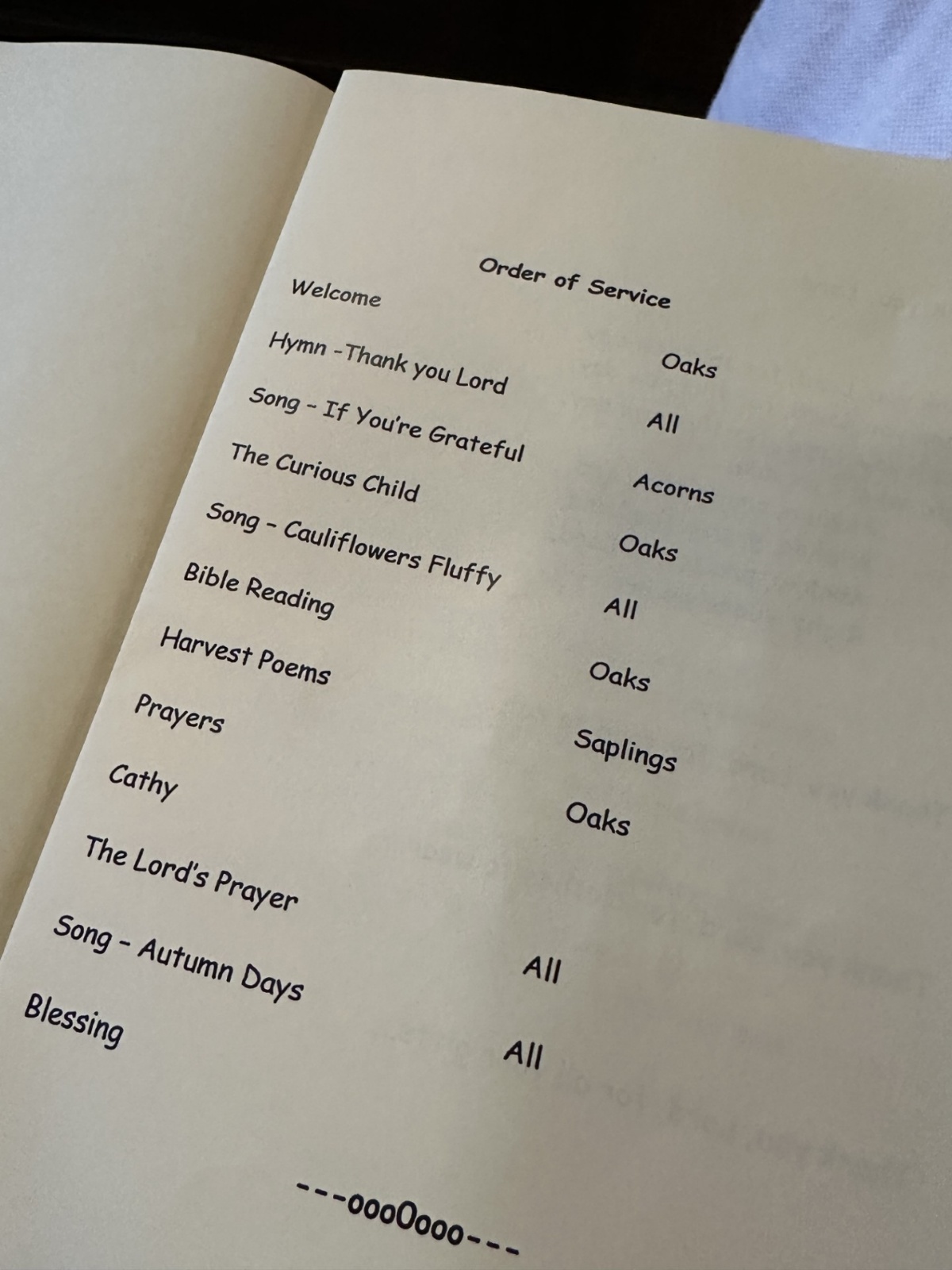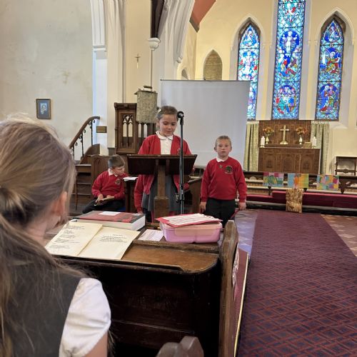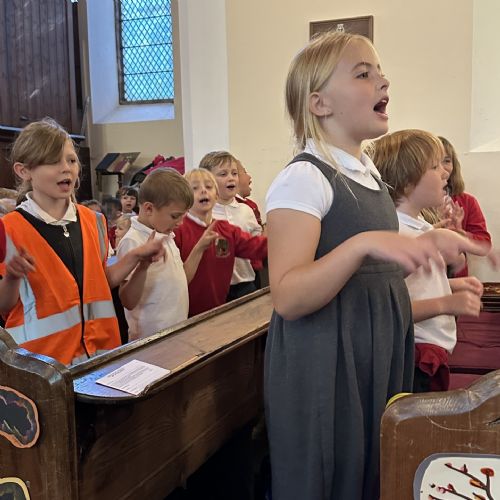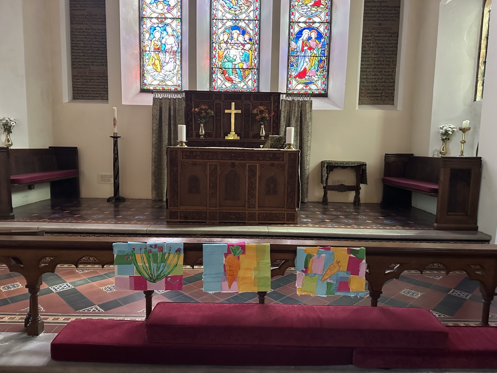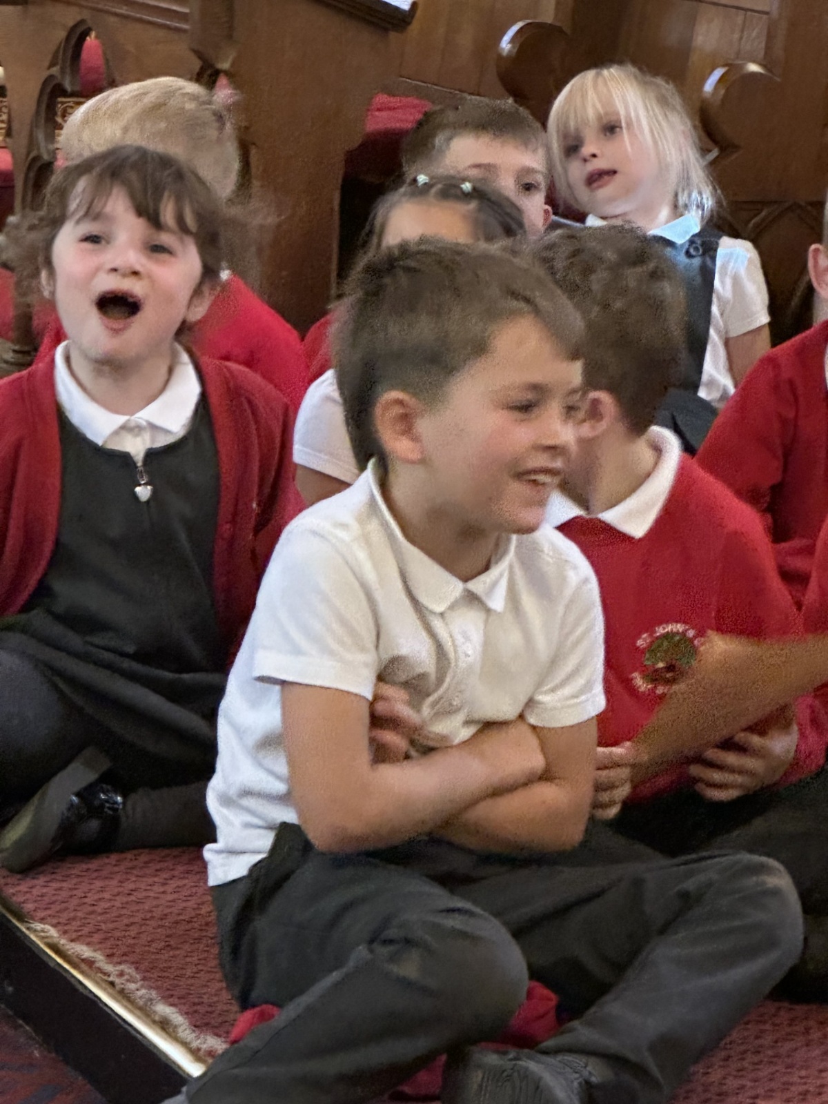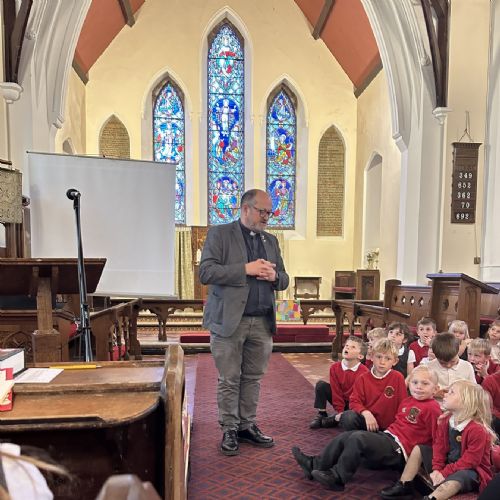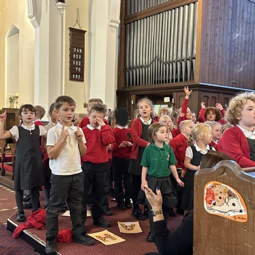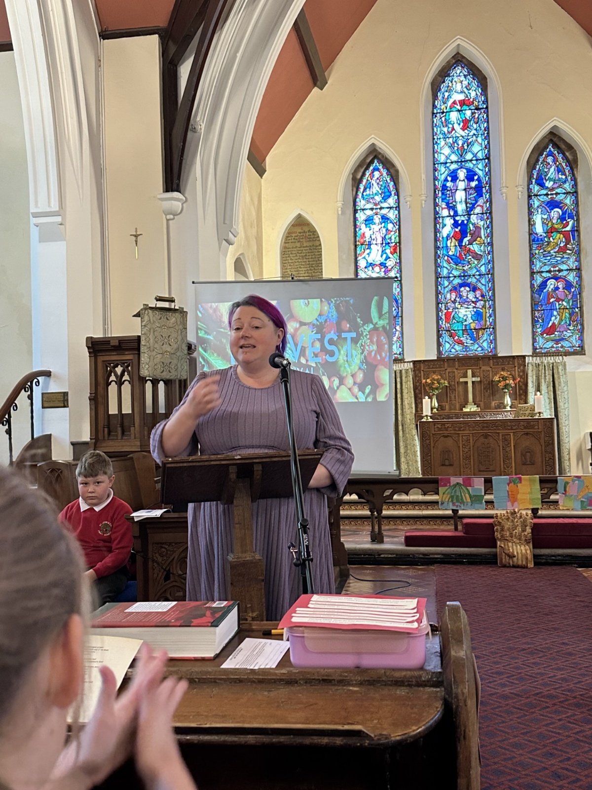 On a very sunny Monday afternoon, St John's First School walked down to church to celebrate the harvest festival. There the children sang hymns, said Thank you to God for all the food, read a bible story and decorated the church with their beautiful artwork. Cathy and Rev Simon helped the children during the service. It was lovely to see so many families join in with our celebrations.