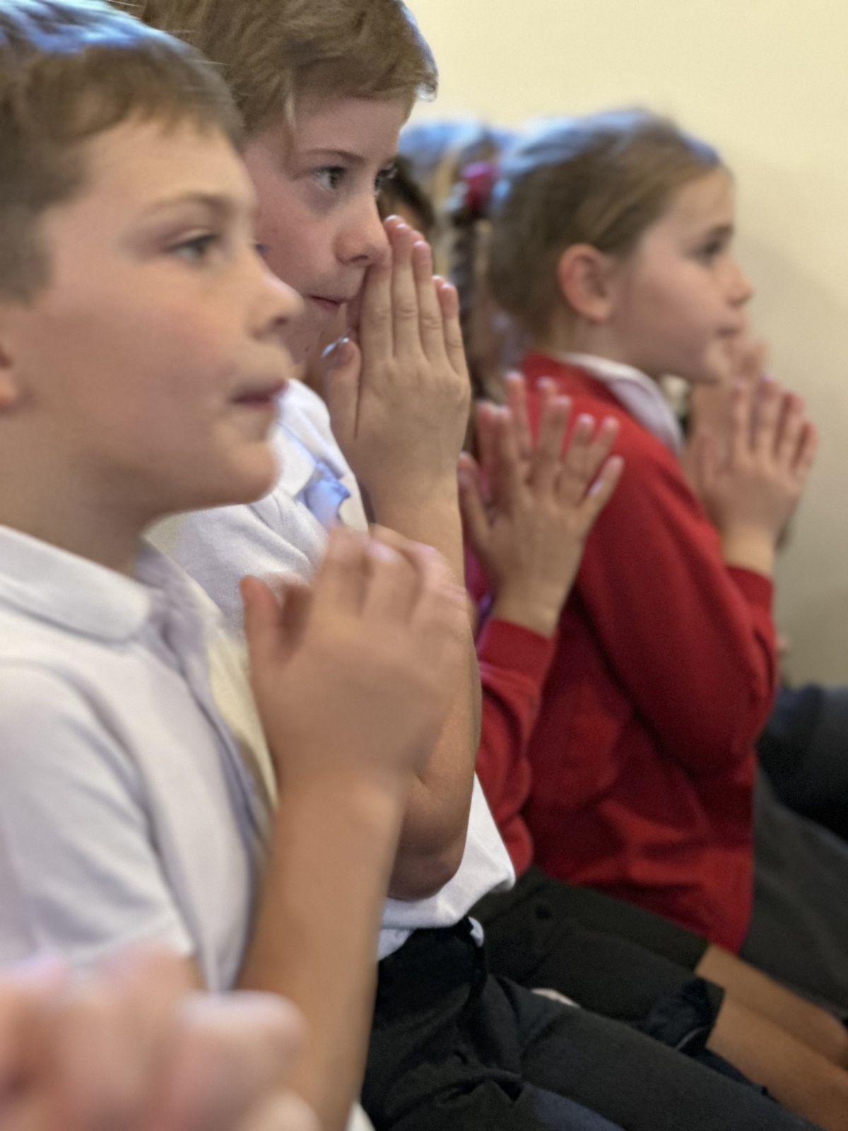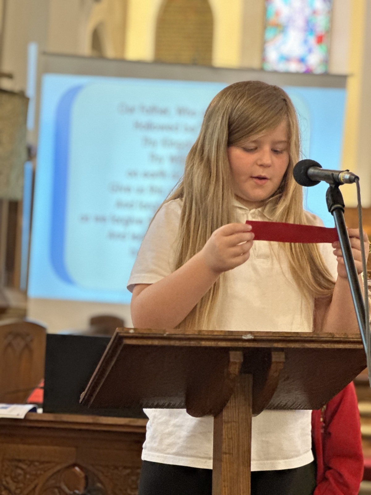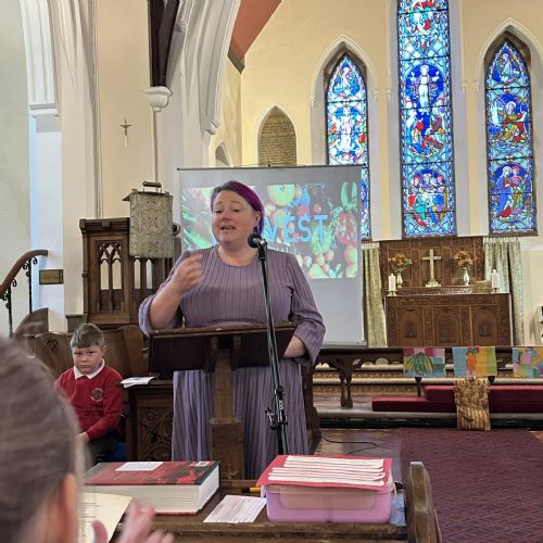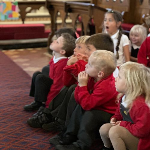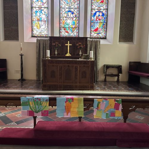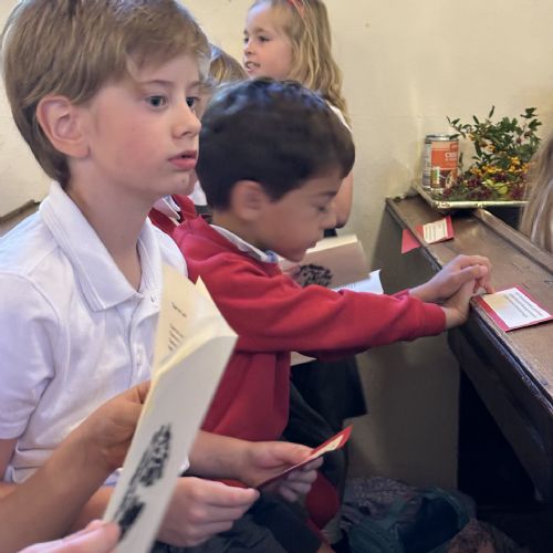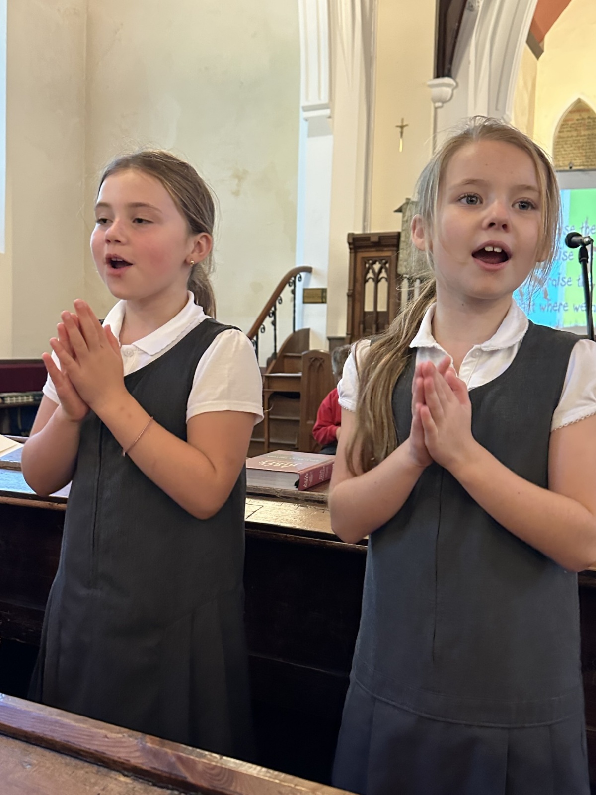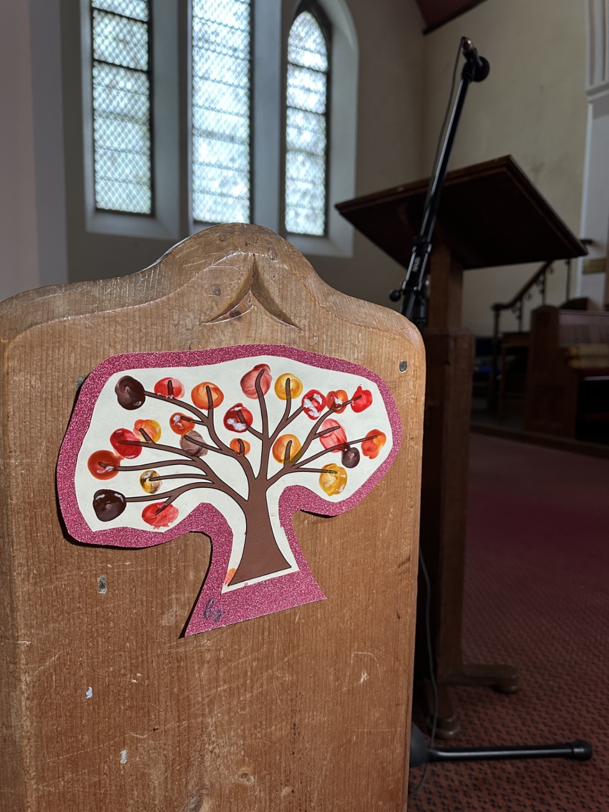 On a very sunny Monday afternoon, St John's First School walked down to church to celebrate the harvest festival. There the children sang hymns, said Thank you to God for all the food, read a bible story and decorated the church with their beautiful artwork. Cathy and Rev Simon helped the children during the service. It was lovely to see so many families join in with our celebrations.